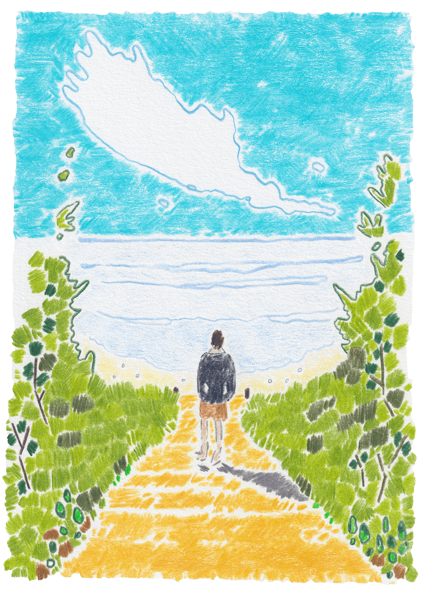 Medium: Hand-drawn with coloured pencil on white Stonehenge paper, signed and dated by Mahala on the back of the drawing.